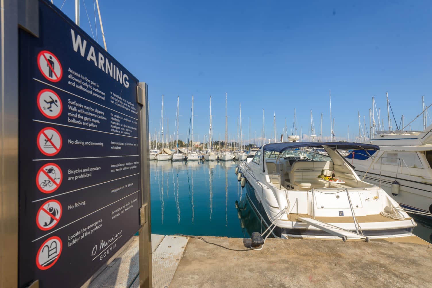 Passion V is available to rent only for one-day cruises. The cruises depart from Marina Gouvia at 10:00 and return at 18:00.