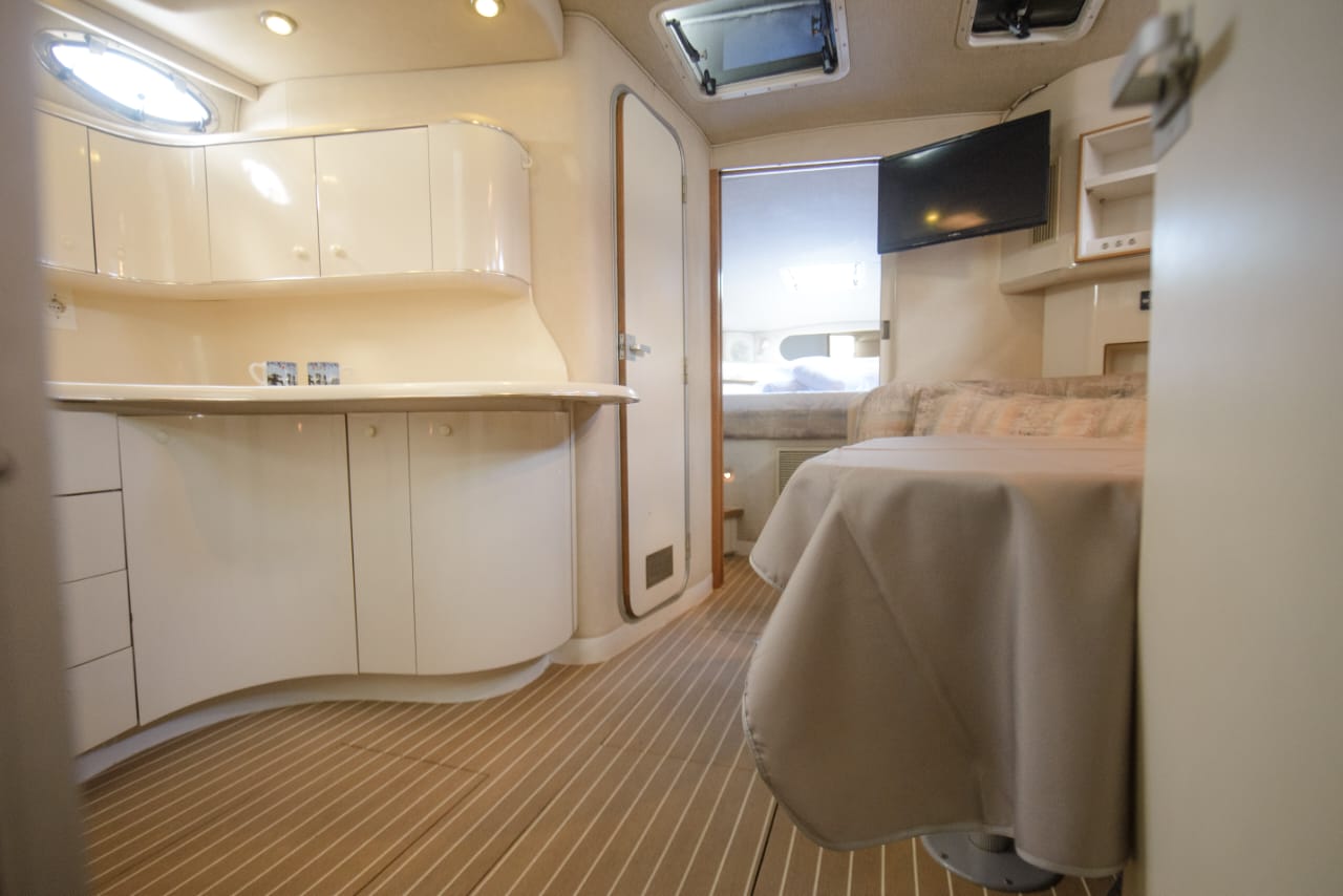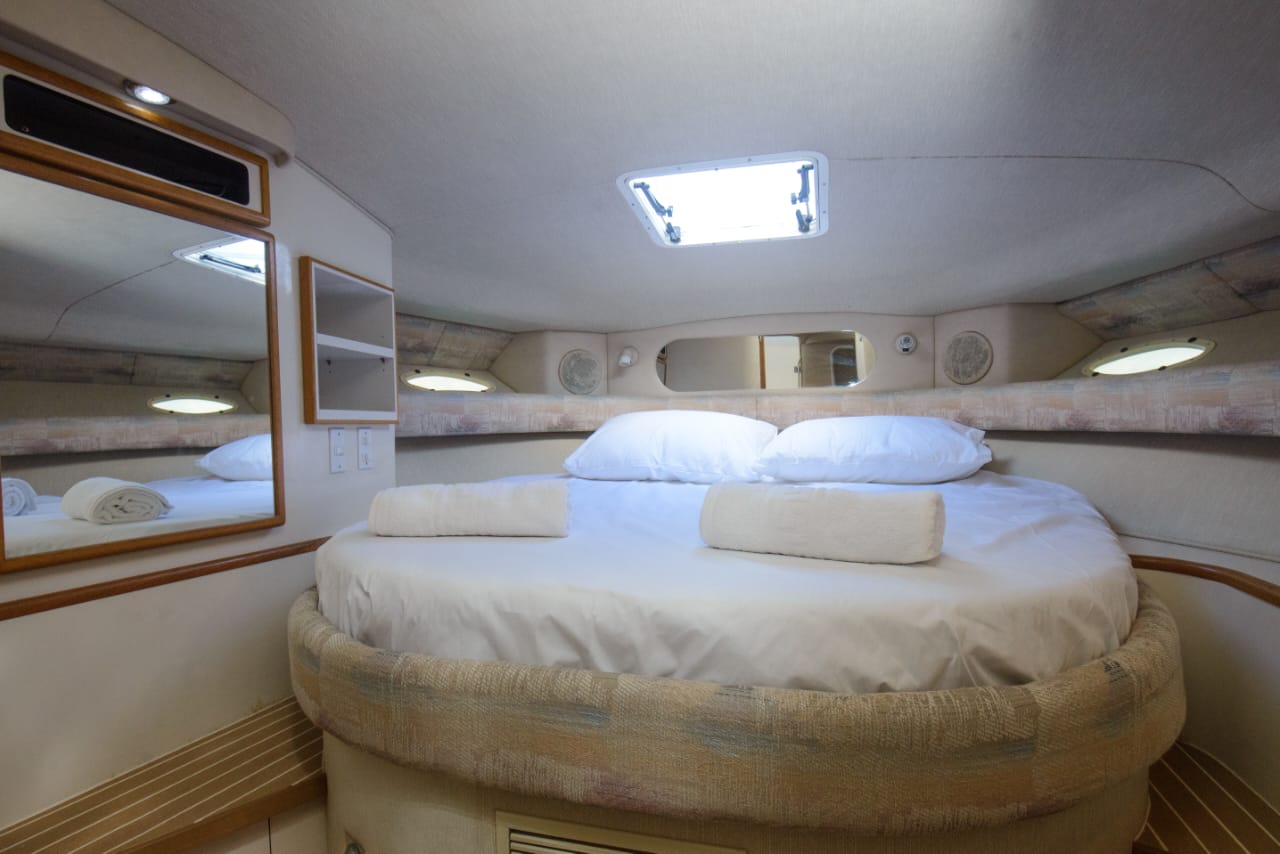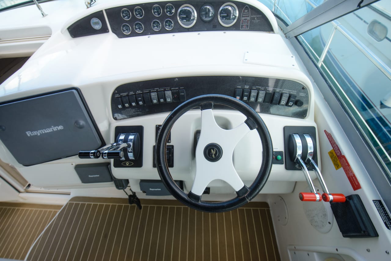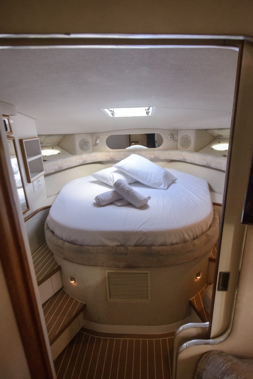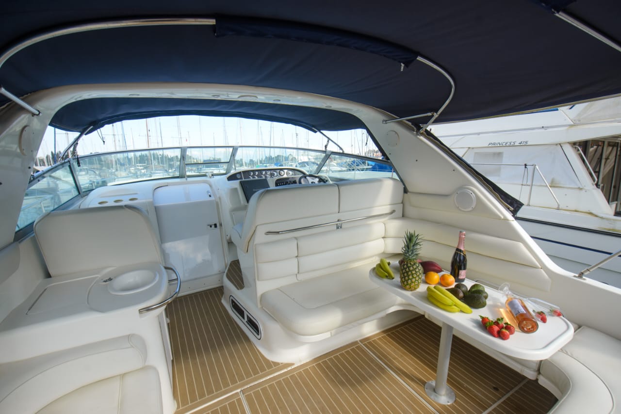 Begin an extraordinary voyage aboard Passion V, a splendid yacht of elegance and luxury ready for charter. With its 12-meter length, featuring two cabins and one bathroom, the Sea Ray Sundancer 370 yacht promises unmatched comfort and sophistication on the seas. Accommodating up to 10 guests, this impressive vessel offers abundant room for leisure and enjoyment. Whether you’re in pursuit of a romantic escape or a thrilling expedition with loved ones, Passion V creates an idyllic ambience for your maritime aspirations.
