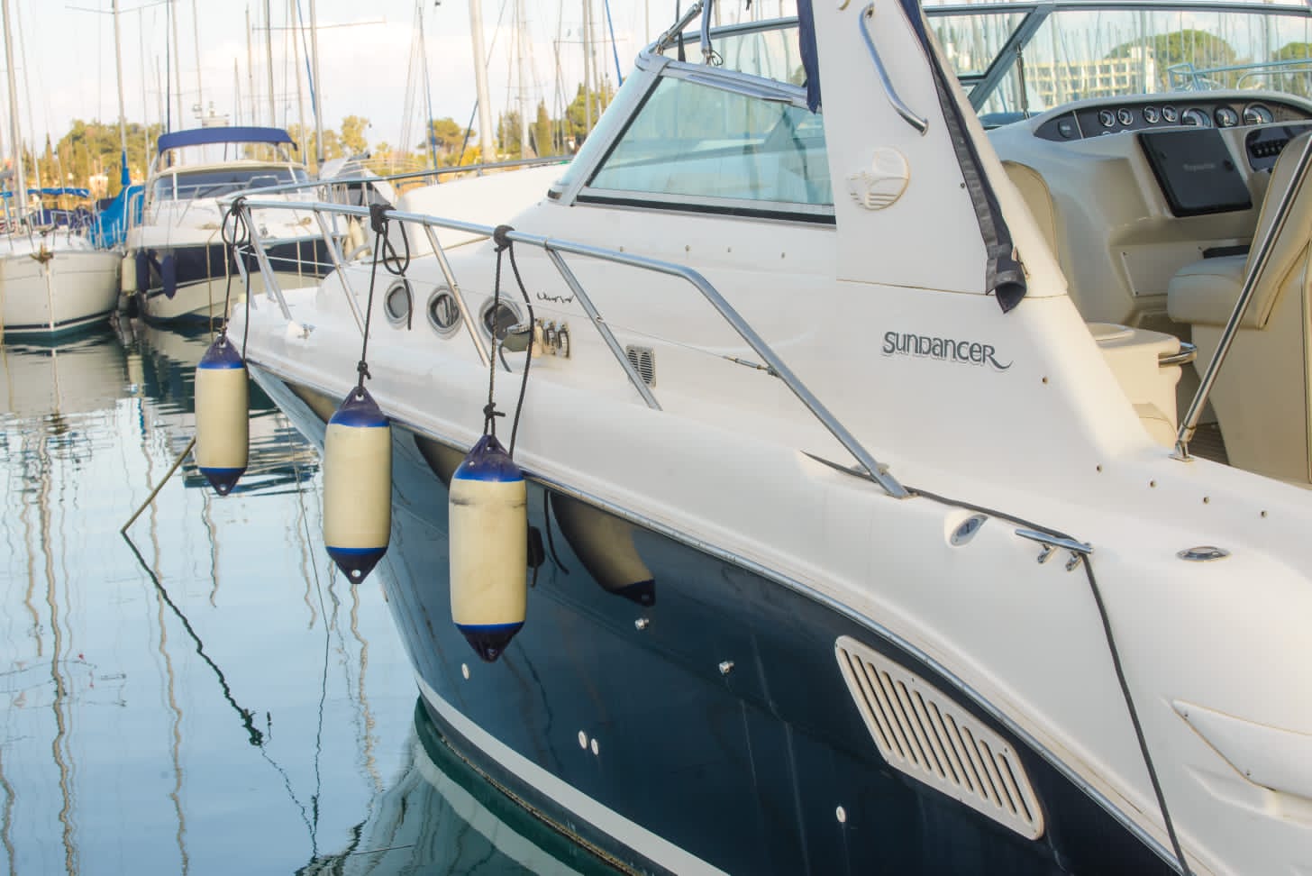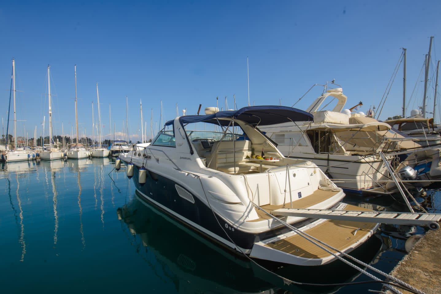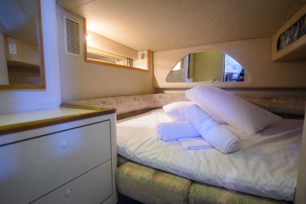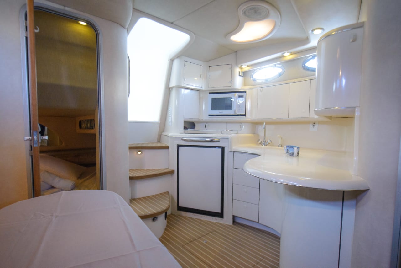 Begin an extraordinary voyage aboard Passion V, a splendid yacht of elegance and luxury ready for charter. With its 12-meter length, featuring two cabins and one bathroom, the Sea Ray Sundancer 370 yacht promises unmatched comfort and sophistication on the seas. Accommodating up to 10 guests, this impressive vessel offers abundant room for leisure and enjoyment. Whether you’re in pursuit of a romantic escape or a thrilling expedition with loved ones, Passion V creates an idyllic ambience for your maritime aspirations.